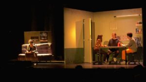 La mise en scène, de Nicolas Le Bricquir, déploie une inventivité qui surprend Le cadrage des scènes, pensé comme celui d’un réalisateur, sculpte l’espace et crée des perspectives quasi cinématographiques. Ce choix transforme le plateau en un véritable dispositif sériel, où les scènes se succèdent comme des épisodes nerveux et addictifs. La scénographie modulable conçue par Juliette Desproges accentue cette impression de plans mouvants, donnant l’illusion d’un montage en temps réel. Une musicienne, Pauline Drand, présente sur scène rythment l’action et bâtit un univers sonore saisissant. La musique live, oscillant entre tension électrique et nappes atmosphériques, devient un acteur à part entière, amplifiant les émotions et accentuant les ruptures. La lumière participe à ce langage visuel, découpant les visages, isolant les corps, soulignant les zones d’ombre du récit. Le résultat est stupéfiant avec une esthétique noire, nerveuse, contemporaine, où le théâtre se réinvente en empruntant au petit écran sa capacité à captiver.