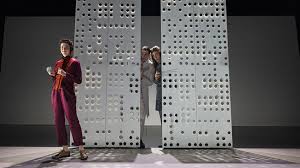 La vision scénique d’Éric Vigner s’affirme comme une proposition audacieuse, presque radicale, où les panneaux mobiles perforés composent un paysage mouvant. Ils deviennent autant de portes, de murs, de respirations, sculptant l’espace avec une liberté décontractée. L’absence de meubles ou d’ornements renforce cette épure et laisse émerger un langage sensoriel porté par la lumière. Le travail de Nicolas Bazoge inscrit chaque geste dans un clair-obscur vibrant, révélant un salon, un jardin, un couloir, un recoin de confidence, sans jamais recourir au réalisme. Cette abstraction permet au spectacle d’adopter une fluidité singulière, empreinte d’une poésie visuelle qui magnifie le jeu des interprètes. La scène respire, se transforme, s’ouvre ou se resserre au fil des émotions. On goûte ce pari esthétique qui fait du plateau un espace mental, où les sentiments prennent forme et la surprise de l’amour devient matière vivante.
