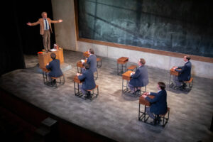 Adapter un récit devenu culte est toujours un pari risqué, surtout quand la version au cinéma a marqué plusieurs générations d’adolescents. C’est pourtant le défi que décide de relever Jean-Marc Dumontet. Il réunit une équipe de choc pour créer une adaptation pour faire espérer le public. Grâce à une adaptation en français par Gérald Sibleyras et une mise en scène d’Olivier Solivérès à la fois sobre et vivante, la magie opère. Le public retrouve avec plaisir cette atmosphère de liberté naissante, cette jeunesse tiraillée entre la peur, l’autorité violente et le courage d’exister. L’espace scénique, rythmé par des jeux de lumière précis et quelques projections discrètes, soutient habilement le récit sans jamais l’écraser. Le numérique, utilisé avec parcimonie, offre une respiration contemporaine et met en valeur la beauté du texte. L’alternance entre moments collectifs et instants d’intimité donne une belle dynamique, rendant tangible le passage de l’adolescence à l’âge adulte malgré eux. L’émotion est là, discrète, diffuse, dans les regards et les silences. Stéphane Freiss, Xavier Gallais, Olivier Bouana, Julien Despont, Yvan Garouel, Lancelot Jardin, Christophe Laubion, Octave Lemarchand, Victor Mons, Ethan Oliel, Maxence Seva, Basile Sommermeyer, Antonin Dalvy, Gabriel Ecoffey-Zeller, Joseph Hartman et Arthur Toullet s’engagent avec sincérité, trouvant le ton juste entre exaltation et retenue. Le metteur en scène parvient à créer un équilibre entre fidélité et réinvention, donnant à l’ensemble une énergie douce et inspirante.