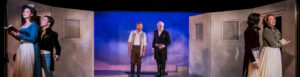 La proposition scénique surprend par sa liberté, oscillant entre respect du texte et modernité assumée. Marianne Clévy prend le parti d’inscrire la pièce dans un univers visuel vif, presque pop, où la lumière, la gestuelle et la diction jouent sur les ruptures. L’audace est réelle et donne au spectacle un souffle joyeux, parfois un peu bavard. Quinze à vingt minutes de moins auraient permis de conserver la même intensité sans perdre en profondeur. Quelques références musicales contemporaines entre Poulenc, Barbara, “Y’a d’la joie” apparaissent comme des clins d’œil charmants, quoique inégaux dans leur intégration. On aurait aimé un esprit de farce jusqu’au-boutiste, plus tranché, plus délirant et plus sur l’ensemble du spectacle. Est-ce que tout le monde s’aperçoit de ces assertions? Malgré cela, le spectacle garde cohérence et témoigne d’un amour sincère du théâtre, celui qui cherche à relier les époques plutôt qu’à les opposer.