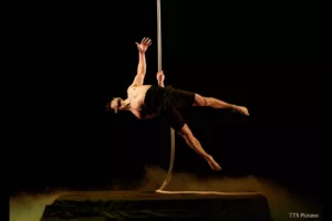 Les interprètes évoluent dans un espace volontairement dépouillé, fondé sur une succession de transitions dansées qui rappellent certaines créations du cirque contemporain. Leur engagement physique crée par moments une intensité indéniable, notamment grâce au choix musical cohérent qui accompagne chaque entrée en scène. Les costumes sobres, qui laissent souvent voir la musculature impeccable des circassiens masculins, ajoutent une dimension esthétique presque sculpturale. Pourtant, l’absence totale d’un véritable numéro collectif finit par créer un rythme fragmenté, empêchant l’ensemble de trouver une dynamique globale. Les solos se succèdent les uns après les autres, se ressemblent parfois et peinent à générer l’émotion promise. On observe une maîtrise corporelle évidente, une discipline solide, une rigueur certaine, sans que l’étincelle de surprise survienne réellement. Les numéros féminins, discrets, manquent d’impact et de technique. L’un d’eux se voit fragilisé par une série d’erreurs qui ne permettent aucune reprise. L’énergie reste là, honnête, volontaire, sans parvenir à masquer la sensation d’une pièce encore en chantier. L’impression dominante reste celle d’une démonstration plutôt que d’un élan narratif ou sensible.