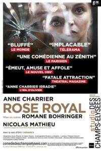 La mise en scène, d’une sobriété millimétrée, de Romane Bohringer, se révèle d’une efficacité remarquable. Sur le plateau, chaque élément est emballé et ficelé. Tout compte. Ce flingue posé là, visible et caché à la fois, est là comme une menace ou une promesse. Tout y est mesuré, pensé pour servir la parole sans la trahir. La tension dramatique, toujours sous contrôle, trouve son apogée dans les moments où le silence parle à la place des mots et dans les moments de musique où l’on chante en toute discrétion. La comédienne occupe la scène avec une autorité magnétique, imposant une présence qui fascine. On retient son souffle, suspendu à cette voix qui nous entraîne vers l’inévitable. « Je me suis préparée à la violence. » Rose Royal, s’il évoque la solitude et la violence, réussit paradoxalement à célébrer la force vitale d’une femme qui refuse de disparaître. On y sent une colère contenue, un humour noir, une tendresse cachée sous la rugosité qui l’a rend très attachante. Rien n’est gratuit, tout est précis, nécessaire, incarné. La justesse du jeu et la cohérence esthétique créent une expérience théâtrale où tout prend sens. On sort secoué, touché, admiratif devant tant de maîtrise et cette fin percutante. Ce n’est pas une histoire heureuse, certes, mais c’est un beau moment de théâtre bouleversant et profondément humain.